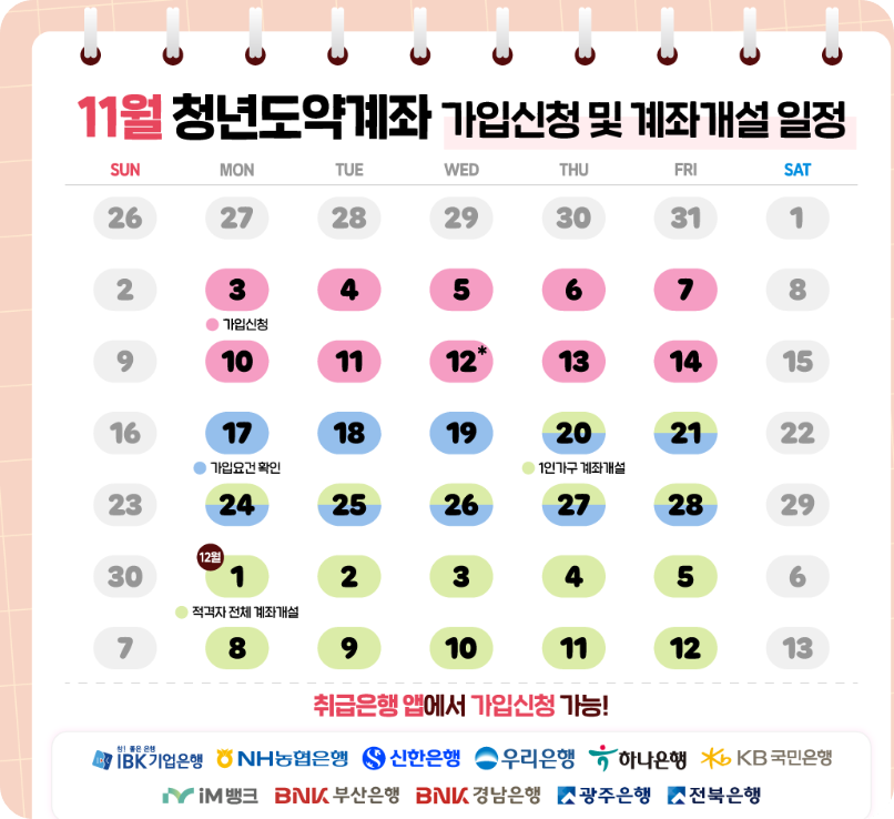 | 신청 방법 | 11개 취급 은행 모바일 앱을 통한 비대면 신청 | (농협, 신한, 우리, 하나, 기업, 국민, 부산, 광주, 전북, 경남, 대구은행) |
